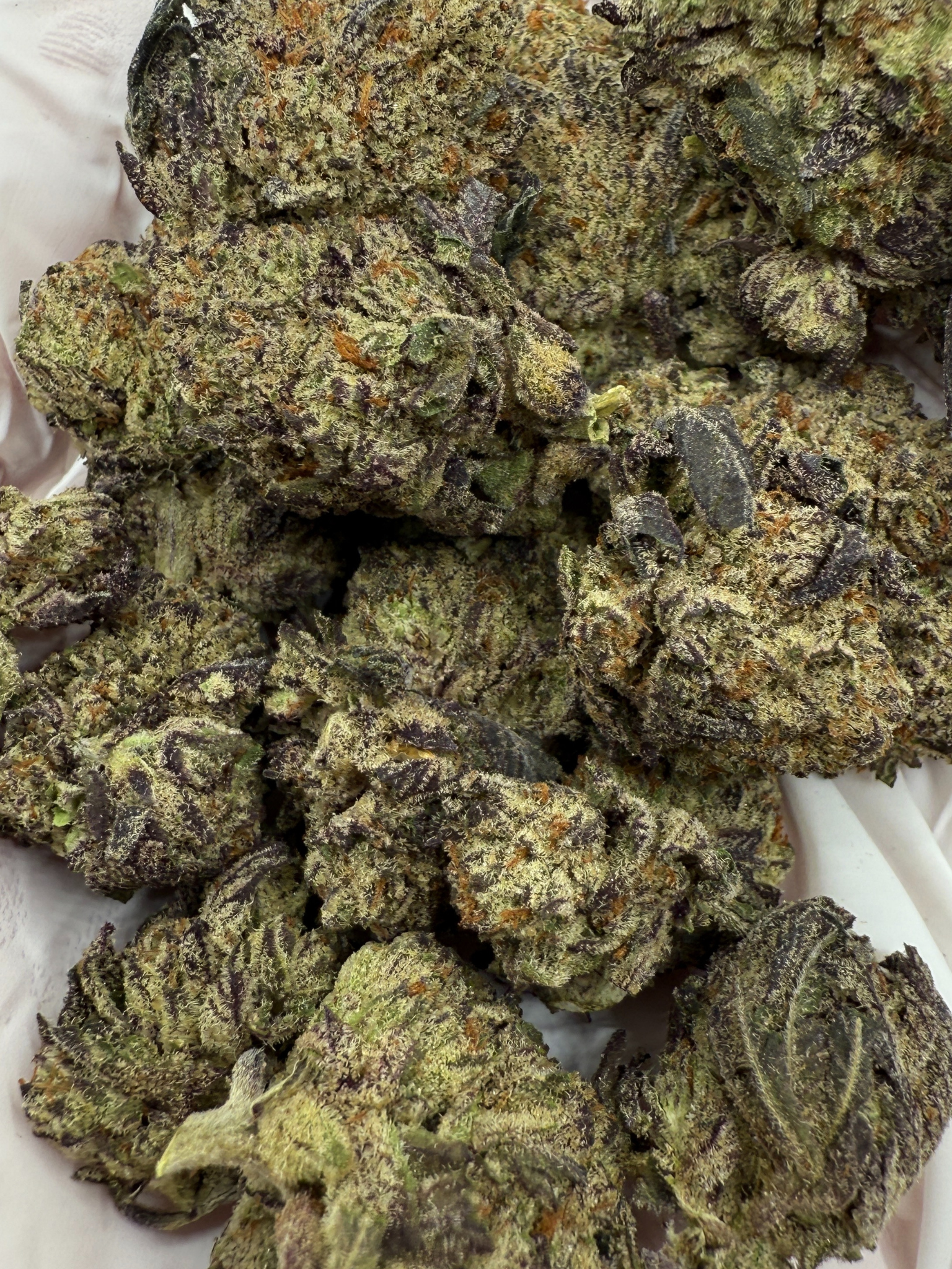 Wedding Cake THCa is a well-balanced hybrid crafted from Triangle Kush and Animal Mints, delivering a 60% indica and 40% sativa profile. The medium-sized buds are dense and visually captivating, featuring a frosty coating of trichomes. Shades of vibrant light green, forest green, and subtle hints of purple are complemented by fiery orange hairs, creating a striking appearance.