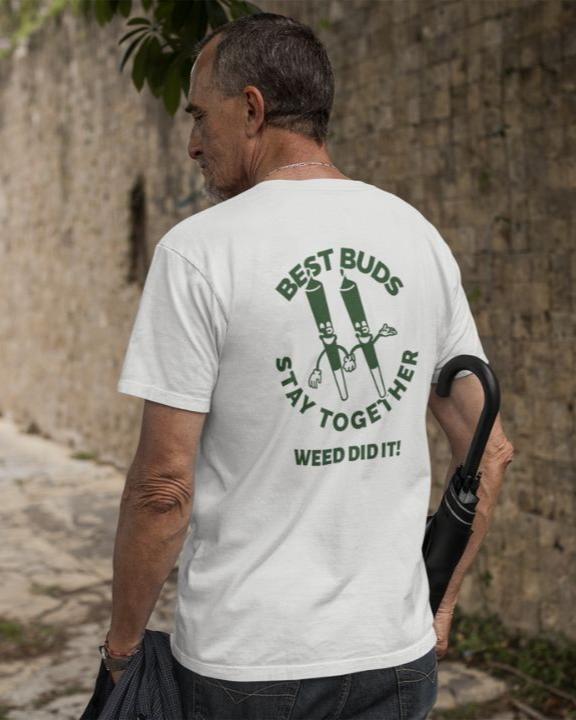 Inspired by a vintage silhouette, the August Cannabis Club "Best Buds" t-shirt, features the motto "Best Buds Stay Together - Weed Did It!". Crafted from soft, durable cotton in a classic white, this tee keeps you comfortable while making a statement. The August Cannabis Club logo sits proudly on the front, so everyone knows you’re part of the crew dedicated to quality cannabis experiences. Available exclusively in white for a crisp, clean look that pairs effortlessly with any style.