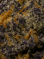 Each nug of Black Truffles is dense and resinous, showcasing a heavy dusting of frosty trichomes that shimmer like crystal. The buds feature a deep forest green core with purple highlights and vivid orange pistils, offering an aesthetic as indulgent as the high itself.